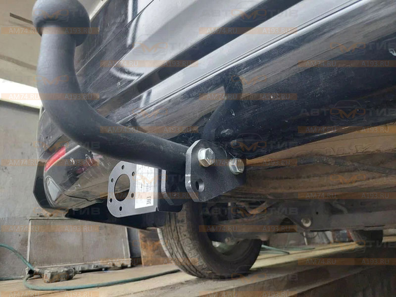Фаркоп Halty HElys условно-съёмный (тип шара A) для установки на Honda Honda Elysion 2004-2013 2WD/4WD предназначен для буксировки прицепа массой 750 кг с вертикальной нагрузкой на шар 75 кг. Требуется подрезка бампера. Возможна установка на авто с ГБО (размер баллона в габаритах запаски). Для авто с 2-мя глушителями возможен контакт ТСУ с выхлопом (нужно дорабатывать крепление выхлопа). Вес в сборе 16,6 кг. Габариты в упаковке 1,07 х 0,41 х 0,25 м. Особенности монтажа. Снять нижние крепления бампера. Снять запаску. Приложить ТСУ к лонжеронам, максимально близко к задней панели кузова, отметить по 2 отверстия в лонжеронах, просверлить отверстия насквозь. Перед сверлением и подрезкой бампера проверьте правильность посадки ТСУ на авто: бампер не должен упереться фронтальной (лицевой) частью в балку ТСУ, при этом вылет шара должен быть достаточным. Подрезать бампер. Для бампера с обвесом подрезка будет больше, чем для стандартного бампера. Установить ТСУ, используя закладные втулки. Нижние крепления бампера выгнуть в обратную сторону и закрепить.