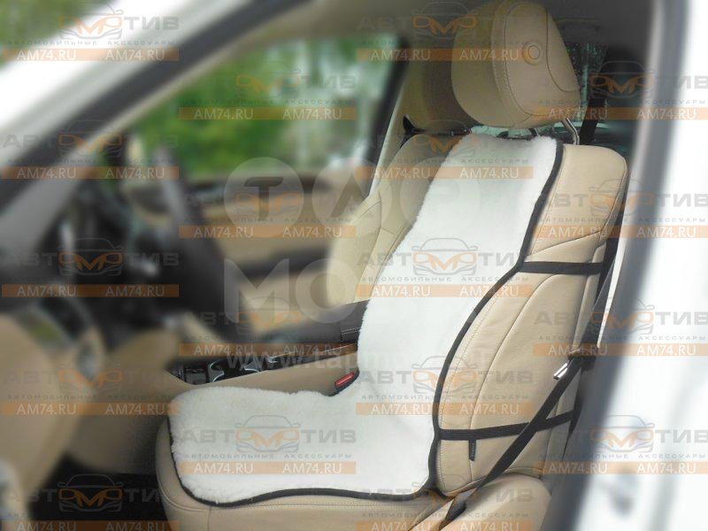 Накидка без подголовника TapModa 249 молочного цвета на сиденье авто. Изготовлена из натуральной овечьей шерсти. Прекрасно согревает и сохраняет тепло. Состав: мех трикотажный с ворсом из овечьей шерсти 70%, подклад - флис. Размер 50х105 см