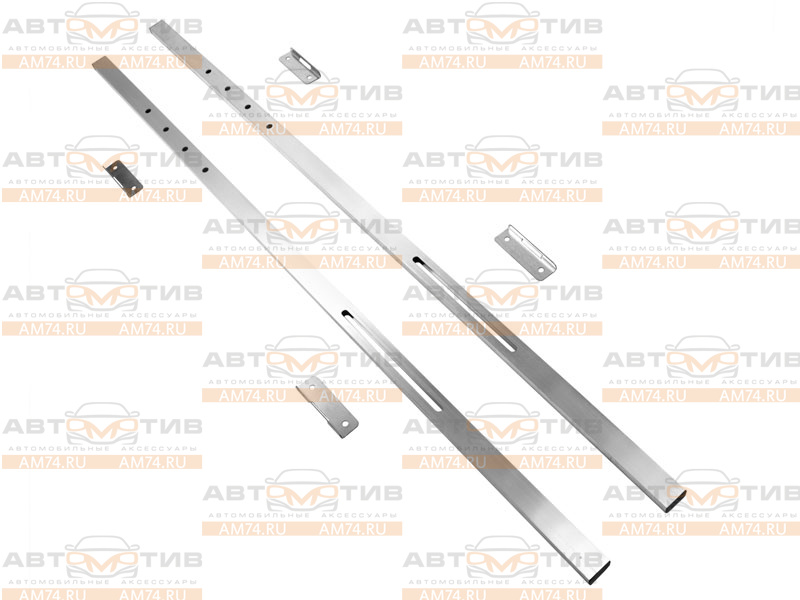В комплекте: 2 алюминиевых профиля (900*40*20) с отверстиями под крепежные скобы, 4 пластиковых заглушки для профилей, 4 оцинкованные пластины для внутреннего крепления автобокса