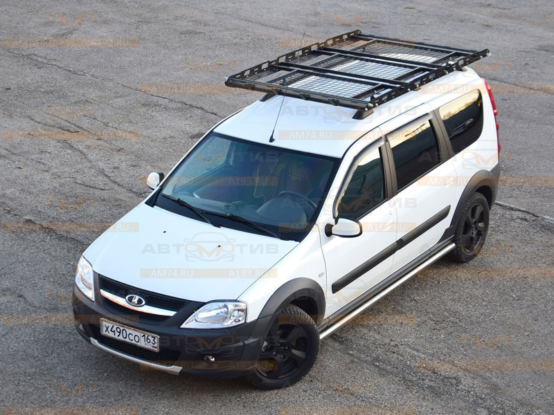 Экспедиционная корзина позволяет транспортировать груз весом до 100 кг. Большая погрузочная площадь позволяет разместить крупногабаритные вещи и длинный груз. Петли (рым-болты) на боковых стенках багажника могут служить креплением для веткоотбойников. Металлические обтекатели уменьшают шумы от встречного потока ветра и снижают коэффициент сопротивления. В результате, расход топлива у автомобиля меньше, чем у машин с самодельным экспедиционным багажником аналогичного размера.