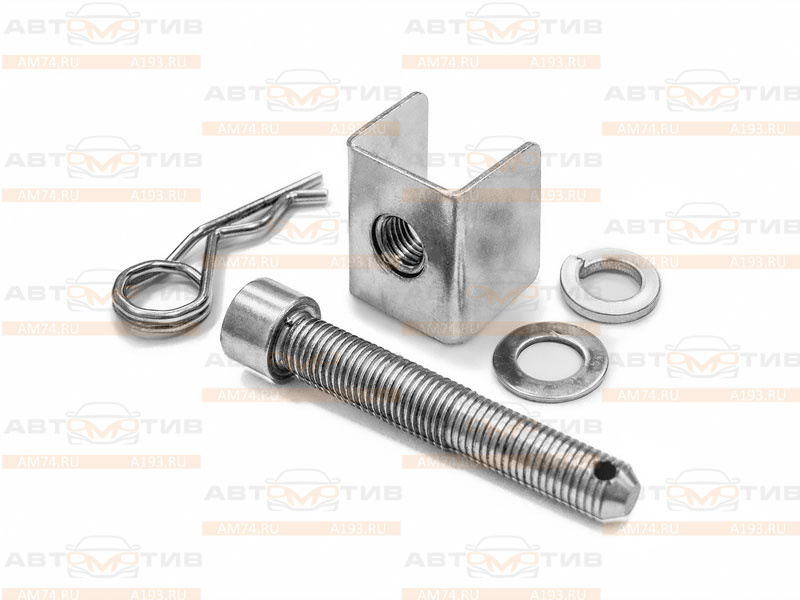Стопорный палец "Фиксатор вставки - антистук" PT Group UNI-XX-991105.00 под американский квадрат предназначен для закрепления съемного квадрата в приемной части ТСУ и предотвращения стука и вибрации, происходящих из-за допуска посадки в приемной трубе с внутренним размером от 41 мм. Изготовлен из стали с оцинкованной поверхностью.