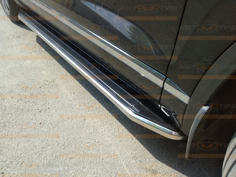 Боковые подножки - пороги Rival A193ALP.5806.1 с площадкой Premium и кронштейнами для установки на Volkswagen Touareg 2018+
